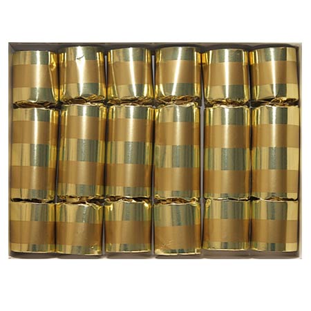 Description: This classy two tone cracker has alternating matte gold and shiny gold stripes. Crackers contain a paper crown (folded tissue party hat), a motto (British joke or riddle), the cracker-snap, and an amusing trick or small gag gift from our Jokes and Gags Gift Selection.