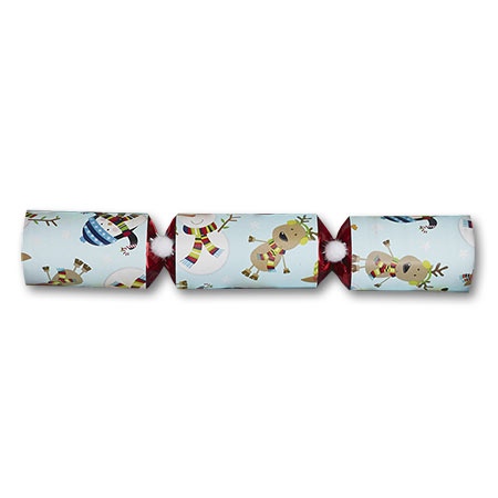 Description: These Racing Snowmen crackers each contain a wind up Snowman character that you race on the included track. Each cracker also contains a tissue crown, the traditional English motto, and of course the cracker snap.